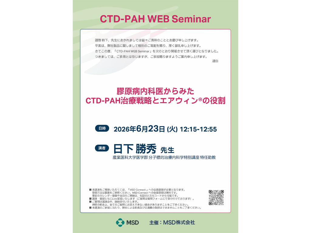 このサイトでは、医療用医薬品を適正にご使用いただくため、医師、歯科医師及び薬剤師などの医療関係者の方を対象に、主としてMSD株式会社の医療用医薬品に関する情報を提供しています。