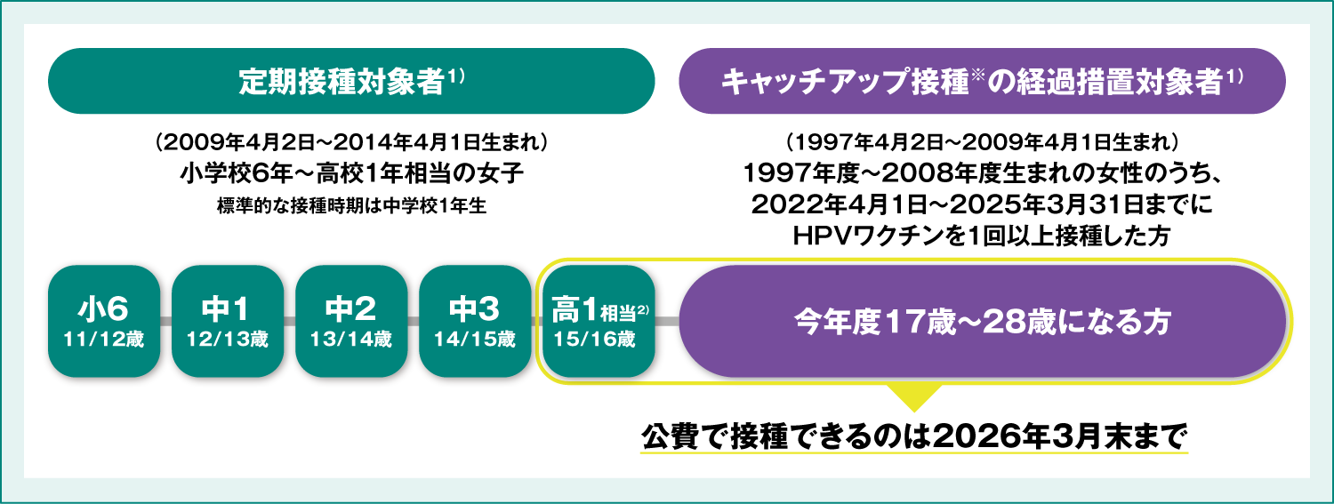 ※1:2024年度までのキャッチアップ接種対象者は、1997年度生まれ~2007年度生まれの女性です