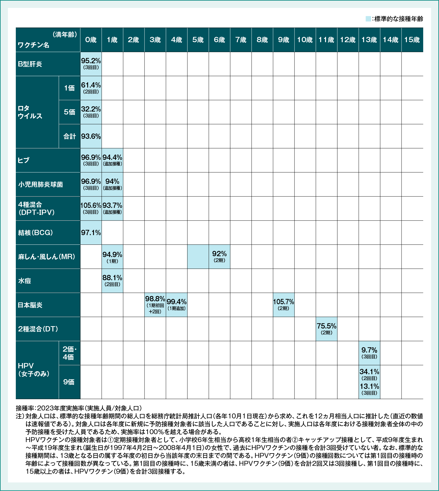 図1:子どもの定期接種ワクチンとその実施率(2023年度)