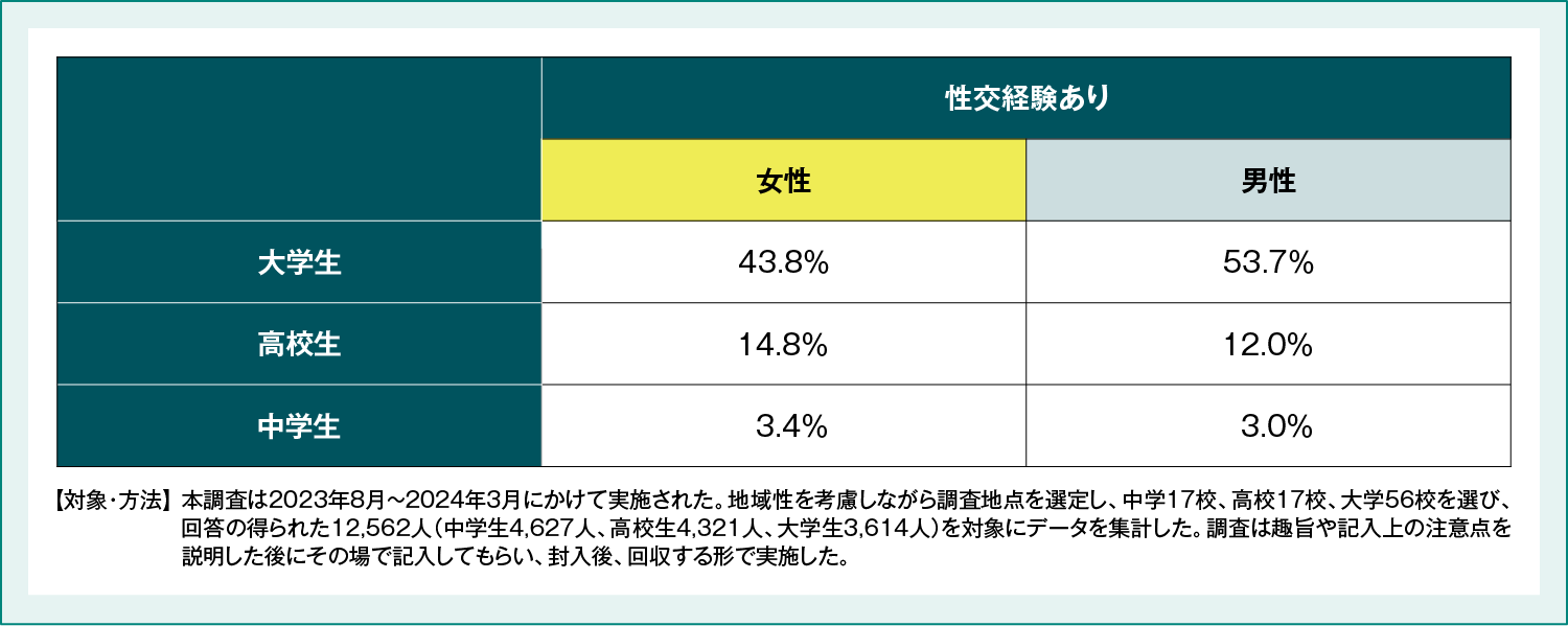 図5:日本における性行動経験率(2023年度)