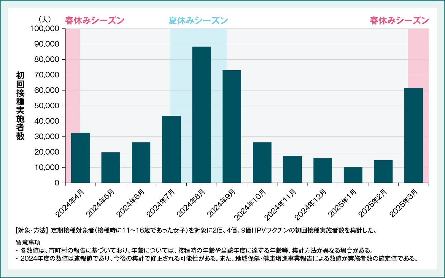 図7:定期接種対象者のHPVワクチン初回接種実施者数(2024年4月~2025年3月)