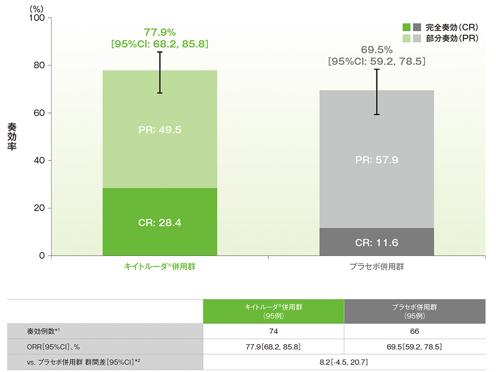 解析対象集団:有効性はITT集団*6、ORR、DORはITT集団のうち、組み入れ時に測定可能病変を有する集団、安全性はAPaT集団*7を解析対象とした。