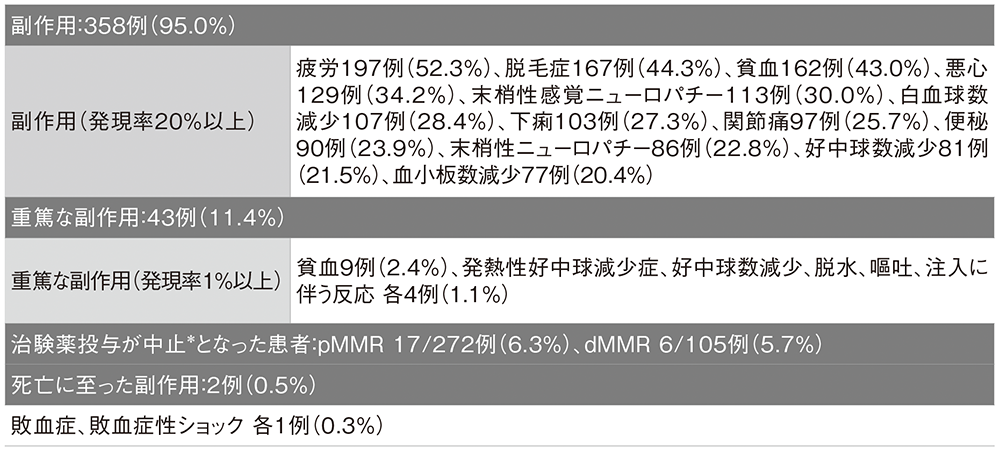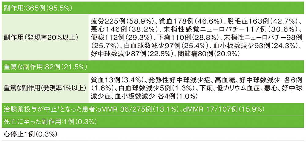 *3 中央検査機関又は治験実施医療機関のMMRに対する免疫組織化学(IHC)検査結果に基づき患者を割り付けた。ただし、無作為割り付けされた患者のMMRステータスについて、中央検査機関の確認を必須とした
