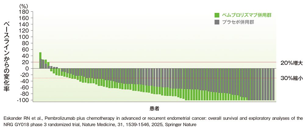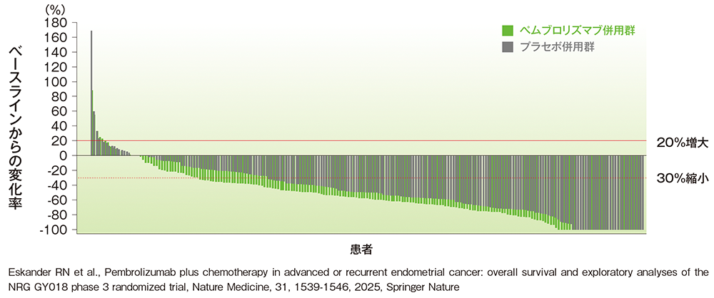 ■pMMR集団における標的病変のベースラインからの最大変化率のウォーターフォールプロット