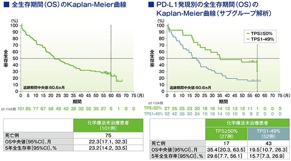 副次評価項目 5年間フォローアップでの化学療法未治療患者における全生存期間:OS