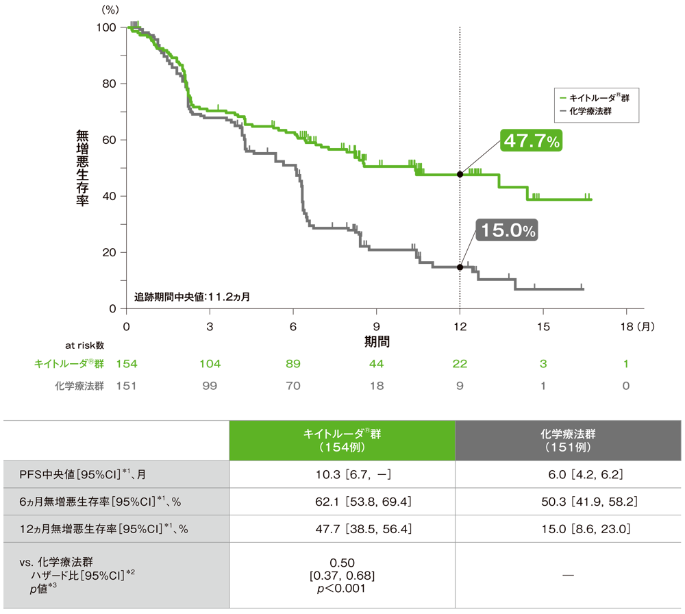 主要評価項目(優越性試験) 無増悪生存期間:PFS(検証的解析結果)