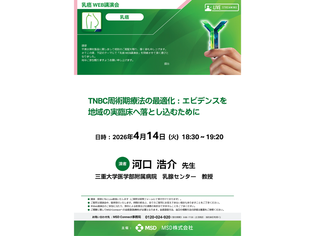 キイトルーダ ビジュアルバナー ホルモン受容体陰性かつHER2陰性で再発高リスクの乳癌における術前・術後薬物療法