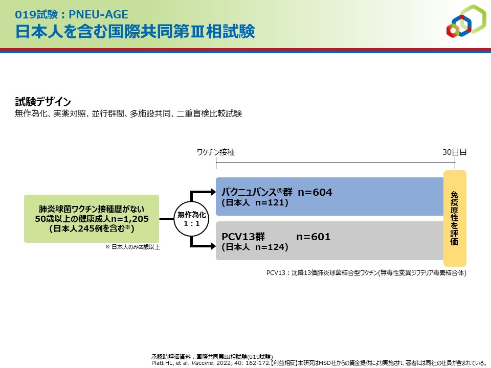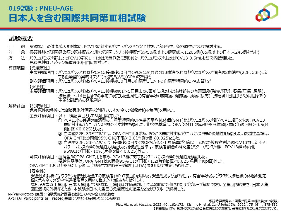 日本人を含む国際共同第Ⅲ相試験(019試験:PNEU-AGE)