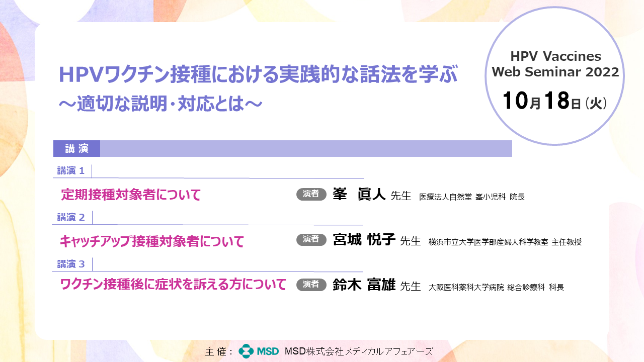 各接種対象者や接種後に症状を訴える方が来院したときの実際の説明や対応法をロールプレイを交えてご紹介いたします。