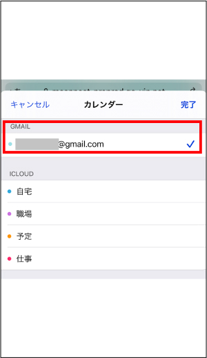 ⑤登録先のカレンダーを選択し、「完了」をタップすると、Googleカレンダー上に登録されます。