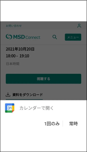 ③「カレンダーで開く」から、「1回のみ」もしくは「常時」いずれかをタップします。(「常時」で今後確認無し、「1回のみ」で毎回表示)
