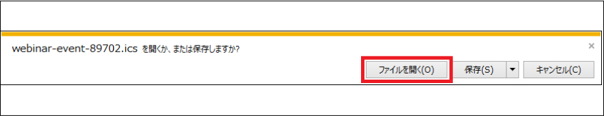 ①icsファイルがダウンロードされたら、該当ファイルを開く