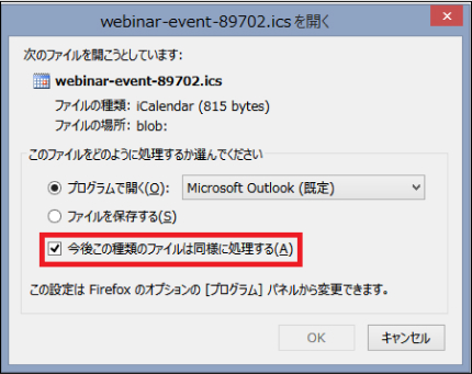 「今後この種類のファイルは同様に処理する」にチェックを入れて、「OK」をクリック