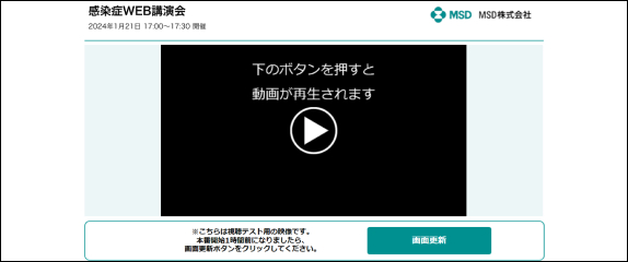 講演会本番予定時間の1時間半前から視聴画面にアクセスできます。