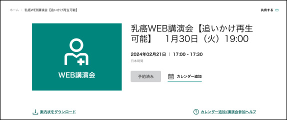 カレンダー追加/講演会参加ヘルプ